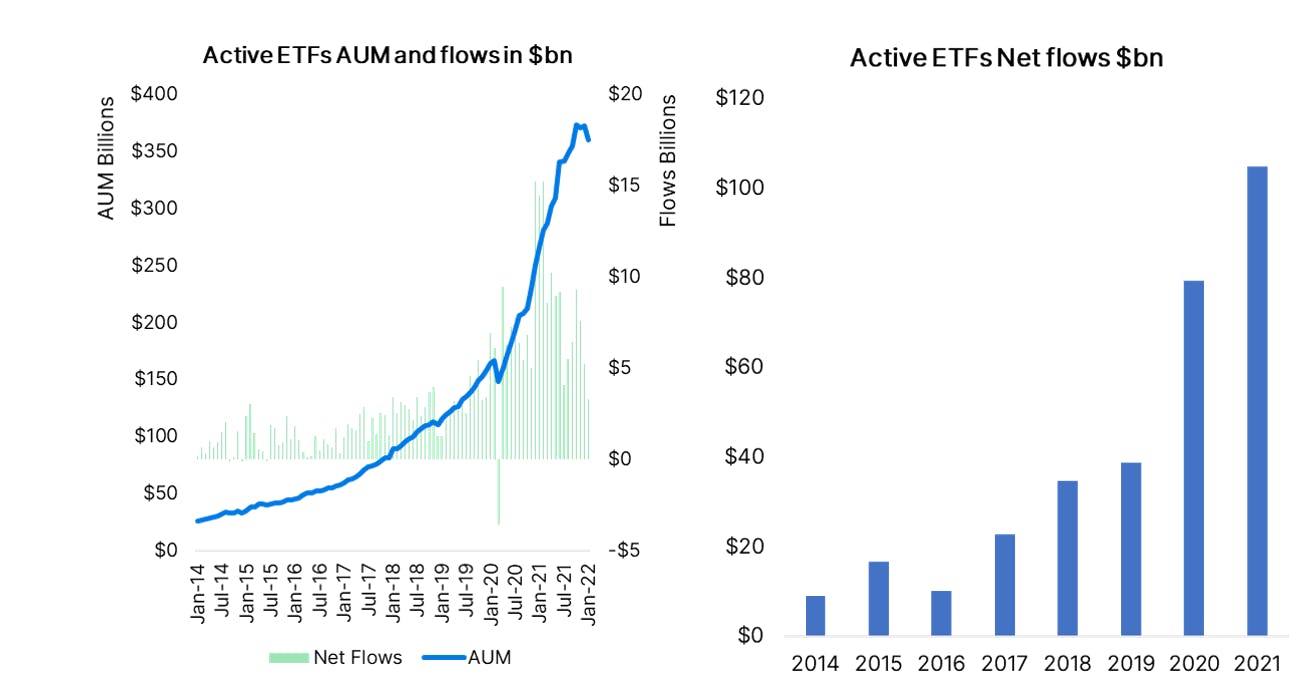 Today, over 1,400 Active ETFs exist worldwide with a combined $370 billion in assets under management (AuM), up from 208 Active ETFs with just $33 billion in AuM in 2014.