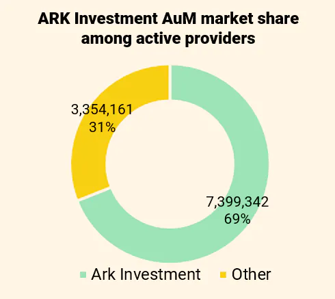 Among Active ETFs, equity-based strategies generated most of the growth (+29.3%). This could partly reflect the hype around ARK Investment ETFs. ARK ETFs represent close to two-third of the total assets invested in Active ETFs. Over the quarter, the headline-making provider registered significant inflows of $16Bn.