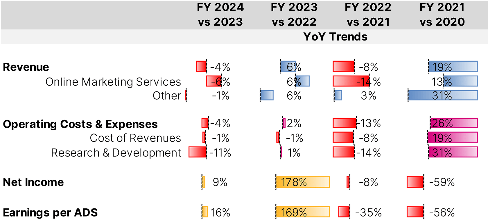 Despite overall revenue slipping by 4%, net income rose 9% from the previous Fiscal Year (FY) (which was also a blockbuster year for growth) and earnings per American Depositary Share (ADS) rising 16%.
