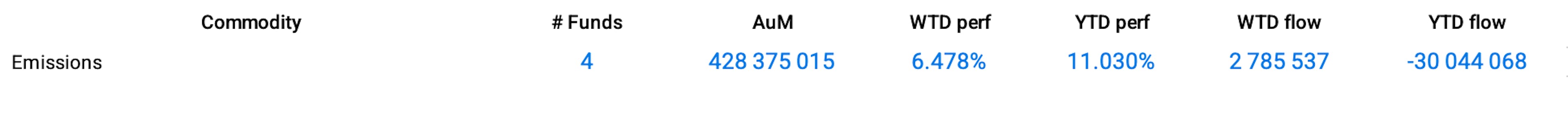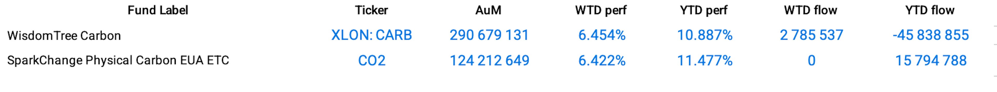 Illustrating this point, the WisdomTree Carbon fund experienced a notable increase of +6.45% during the week, contributing to a year-to-date return of +10.89%.