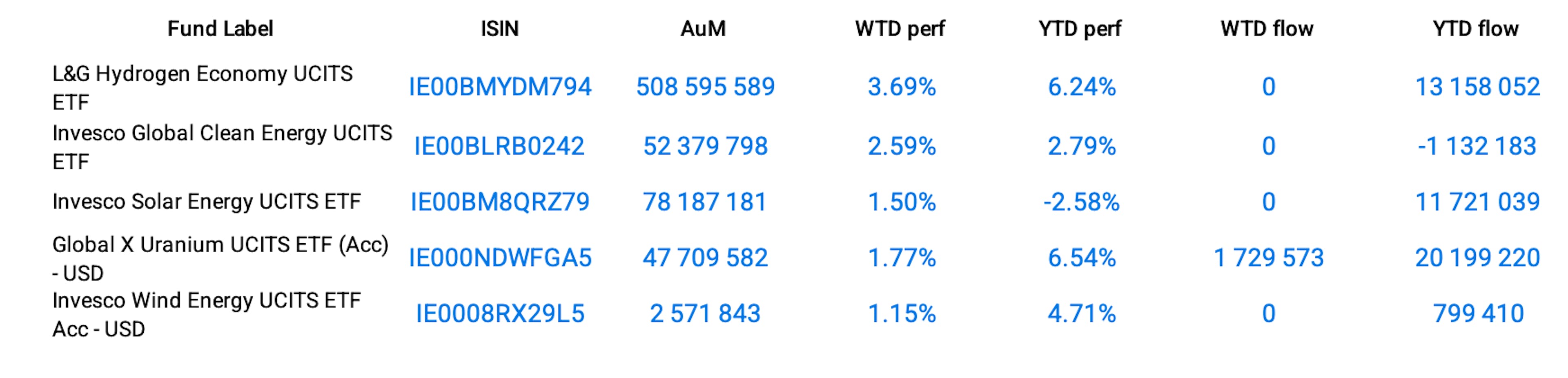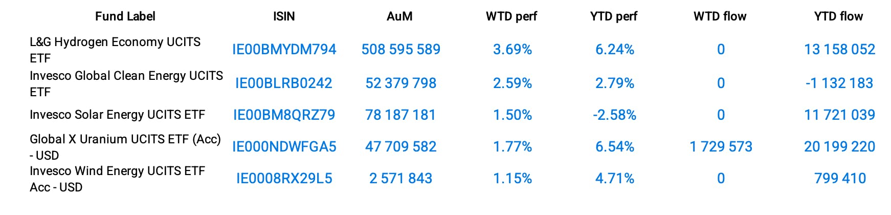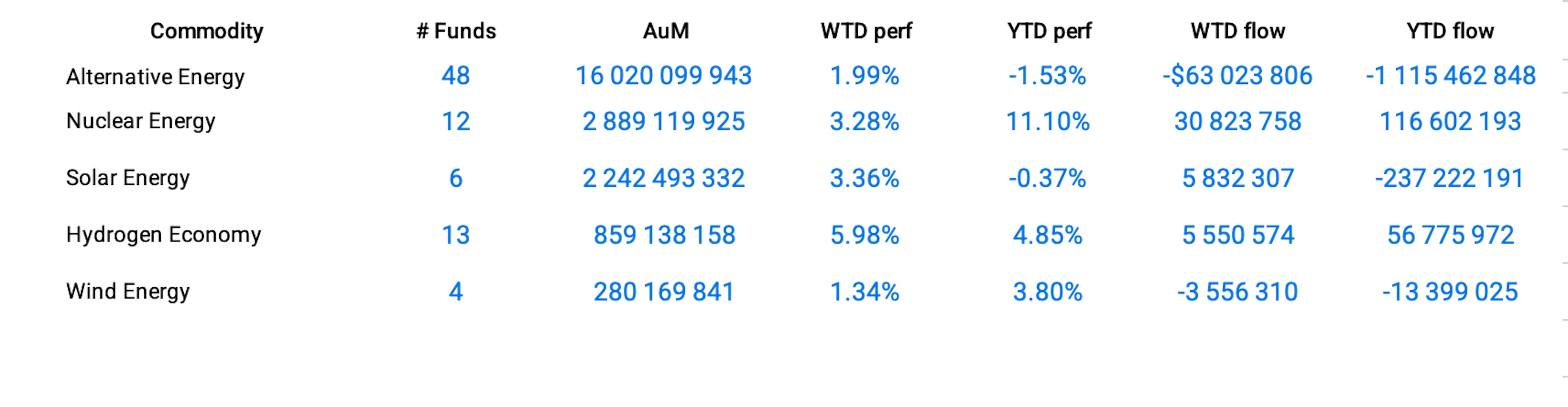 The future of clean energy looks bright as the shift from fossil fuels to renewable energy is accelerating to face environmental emergencies as well as the increasing number of pollution-induced diseases. Specifically, the hydrogen economy theme topped the clean energy-related themes with an astonishing performance of 5.98% this week, followed by solar energy and wind energy, up 3.36% and 1.34% respectively. Nuclear energy, a more controversial form of alternative energy, was also up 3.29% and saw inflows of almost $31 million over the week.