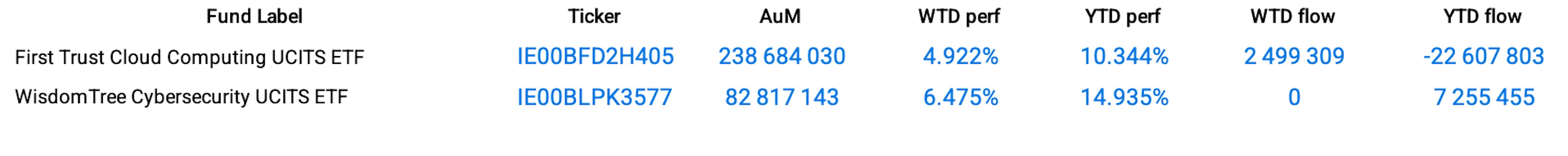 The cloud computing sector has been experiencing strong demand in recent years, as remote work and cloud-based services developed accordingly. Cloud computing providers offer businesses the flexibility to store data and access software on the cloud, reducing the need for on-site hardware and infrastructure. The First Trust Cloud Computing UCITS ETF, which tracks this theme, was up 4.92% over the week.