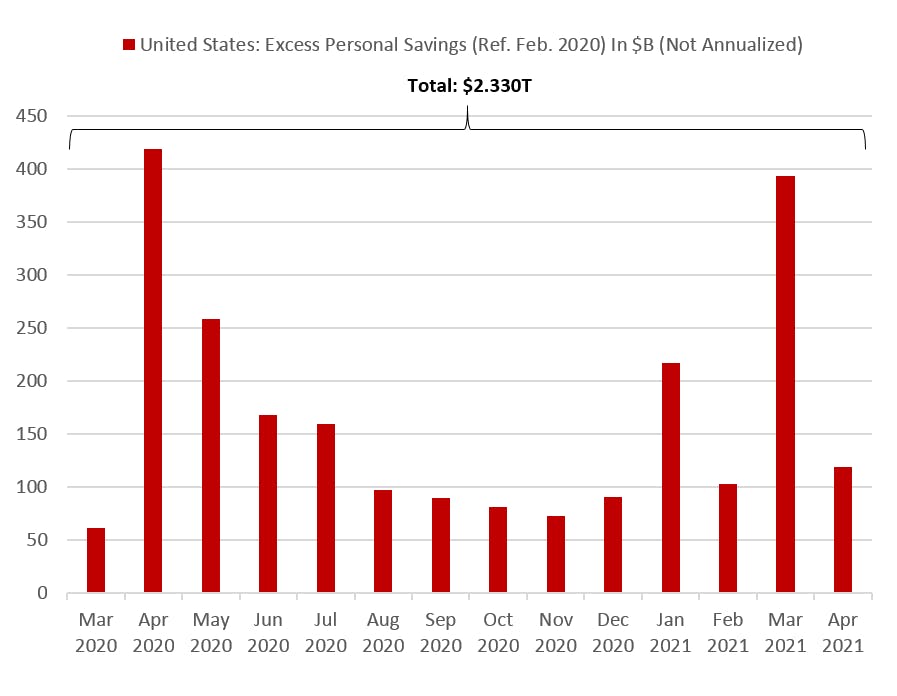 [1] In April, total excess savings (accumulated since March 2020) reached $2.330 trillion (>10% of nominal GDP).