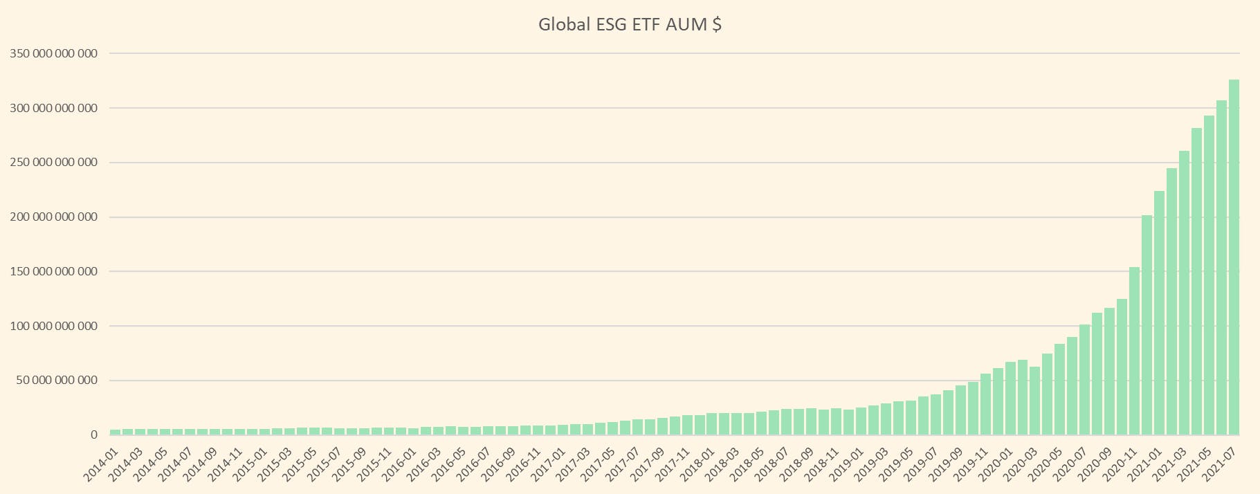 On a global basis, ETFs which follow a sustainable investment approach or theme continue to hit new records with $325 Billion of AuM and $100 Billion of flows year-to-date. This already exceeds the total flows into ESG ETFs in 2020 of $88.5 Billion. The number of ESG ETFs listed worldwide has grown explosively in 2021 with 174 new ETFs being launched between January and August as issuers rush to capture this asset windfall.