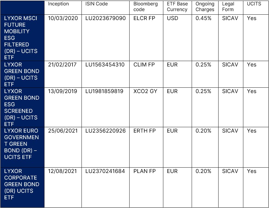 The Funds are respectively Amundi UCITS ETFs (“Amundi ETF”) and Lyxor UCITS ETFs (“Lyxor ETF”). Amundi ETF designates the ETF business of Amundi and includes the funds under both Amundi ETF and Lyxor ETF denomination.