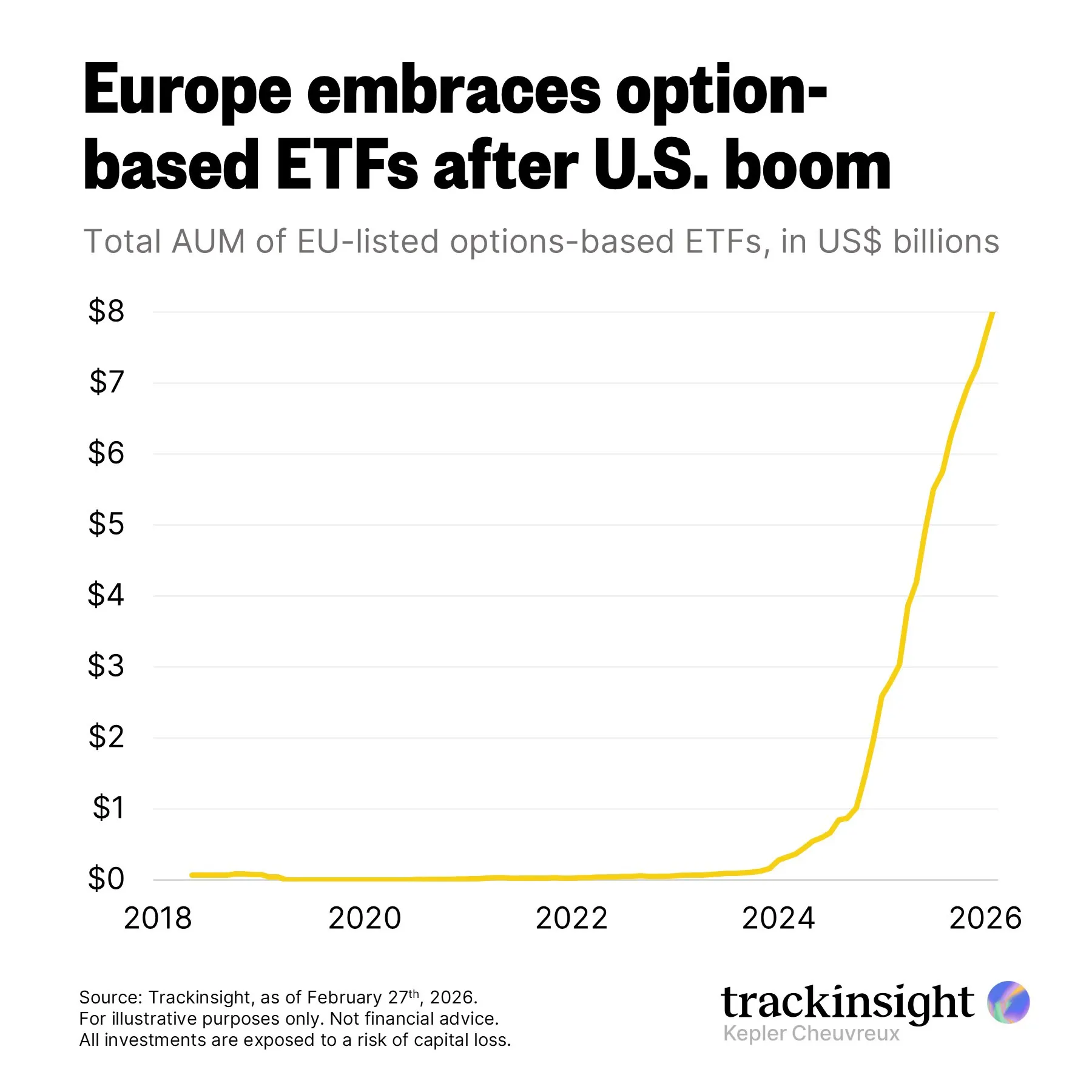 Demand for option-based strategies is rising in Europe, with AUM reaching $8B.