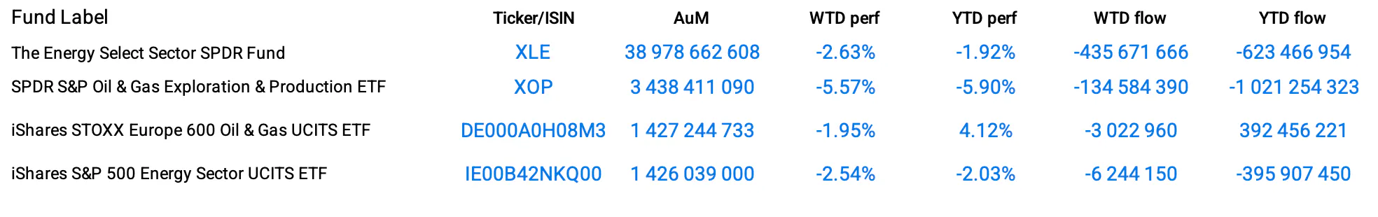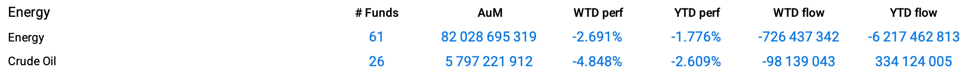 The Trackinsight energy sector saw a similar decline (2.69%), with investors pulling out $726.4 million from the $82 billion managed by 61 funds.