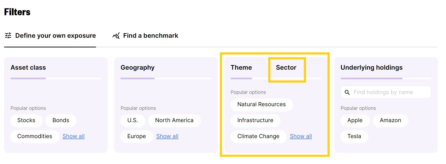 Filters let you select from specific ETF brands: Vanguard, iShares, Invesco, etc. Some prefer large, well-known issuers for track record and liquidity; others might chase smaller issuers with niche focuses.