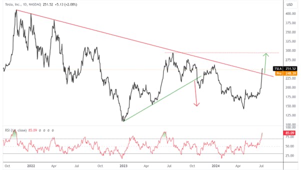 Tesla's stock has been in a downtrend since November 2021, but recent price movements suggest a potential reversal. A key technical indicator, the "higher low" formed in April 2024, hints at a shift in momentum and a possible end to the downtrend.