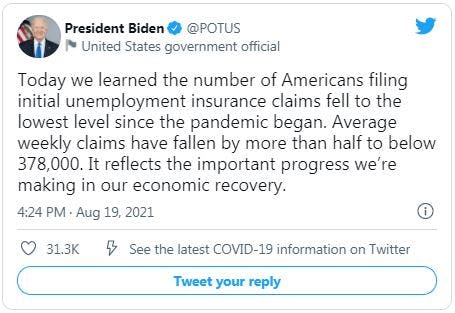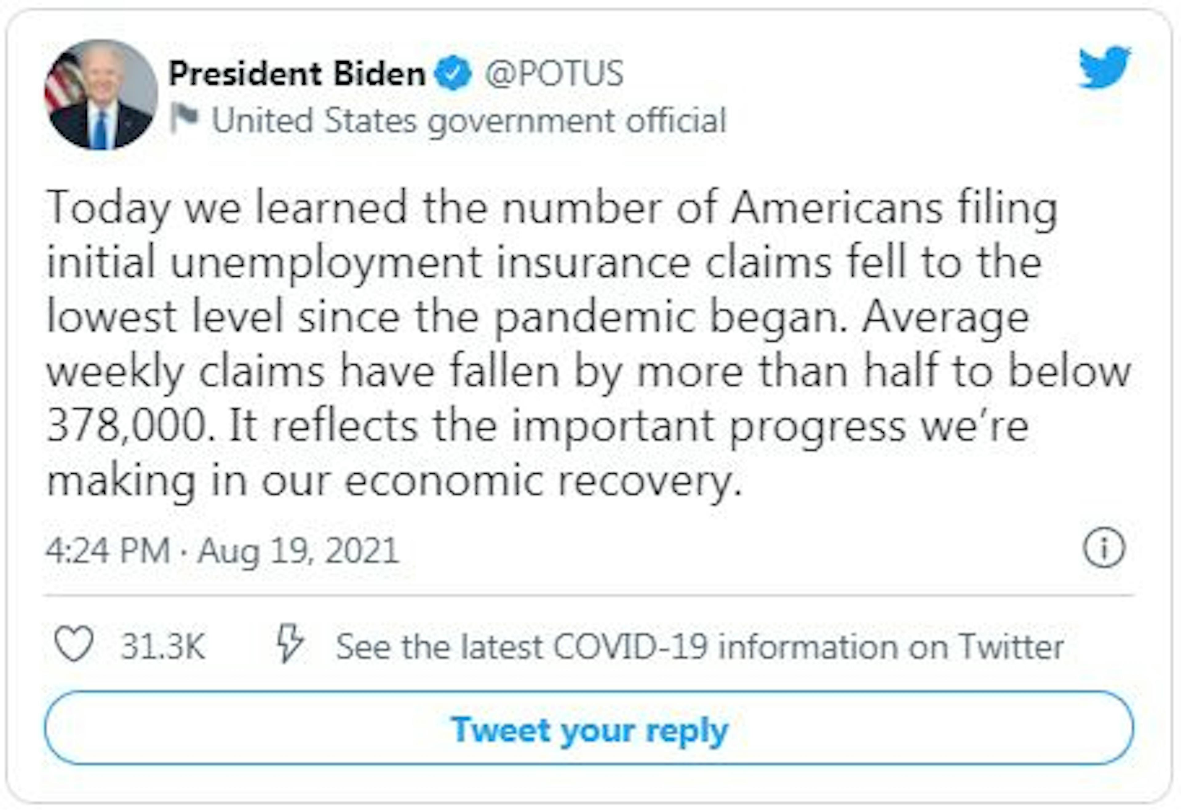 Employment market recovered over the past few months. The latest monthly report shows nonfarm payrolls increased 943k in July, following a revised-up gain of 938k in June. The economy lost 22.4 million jobs over the March-April period last year and has netted 16.7 million since then. In the meantime, data released yesterday showed the number of jobless initial claims dropped to the lowest since the pandemic began.