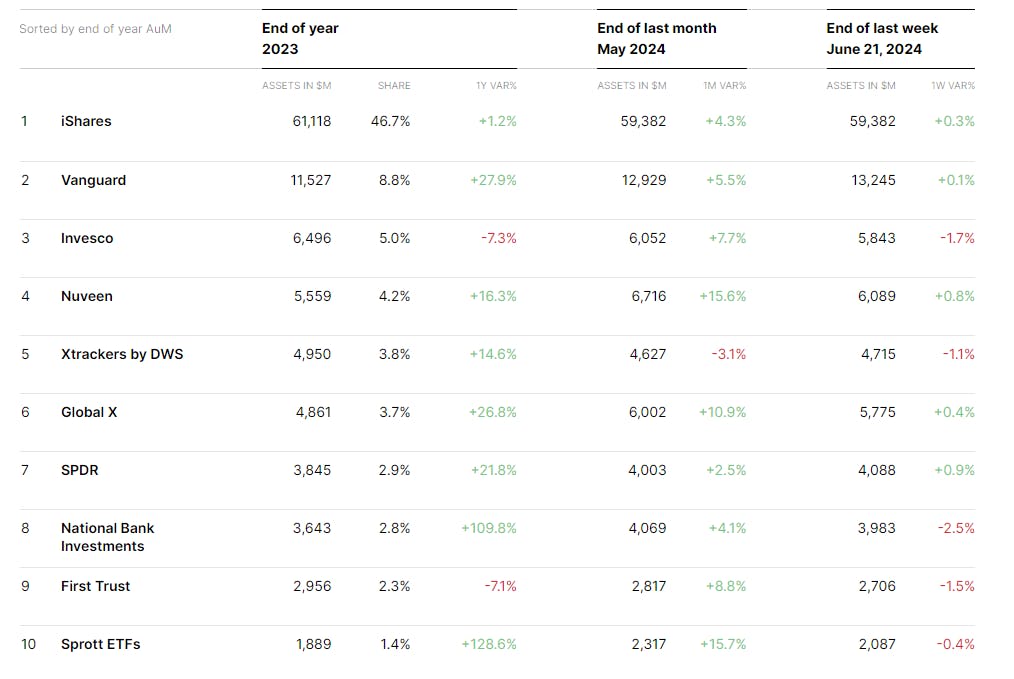 Trackinsight reveals which asset managers are dominating the ESG ETF landscape across the globe. See who's leading the race in Assets Under Management (AUM) and net inflows in Americas.